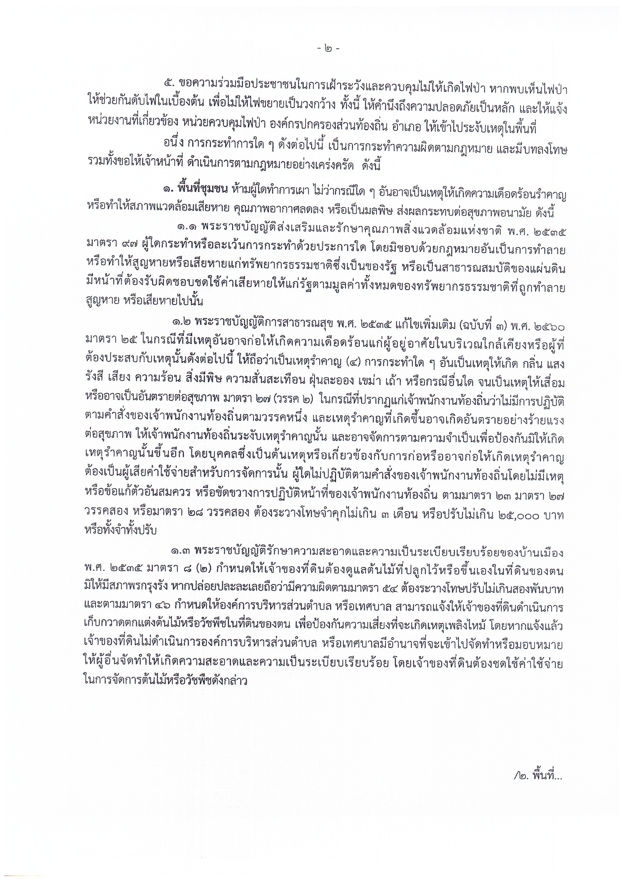 เรื่อง ห้ามเผาในที่โล่งเพื่อป้องกันไฟป่าและหมอกควัน