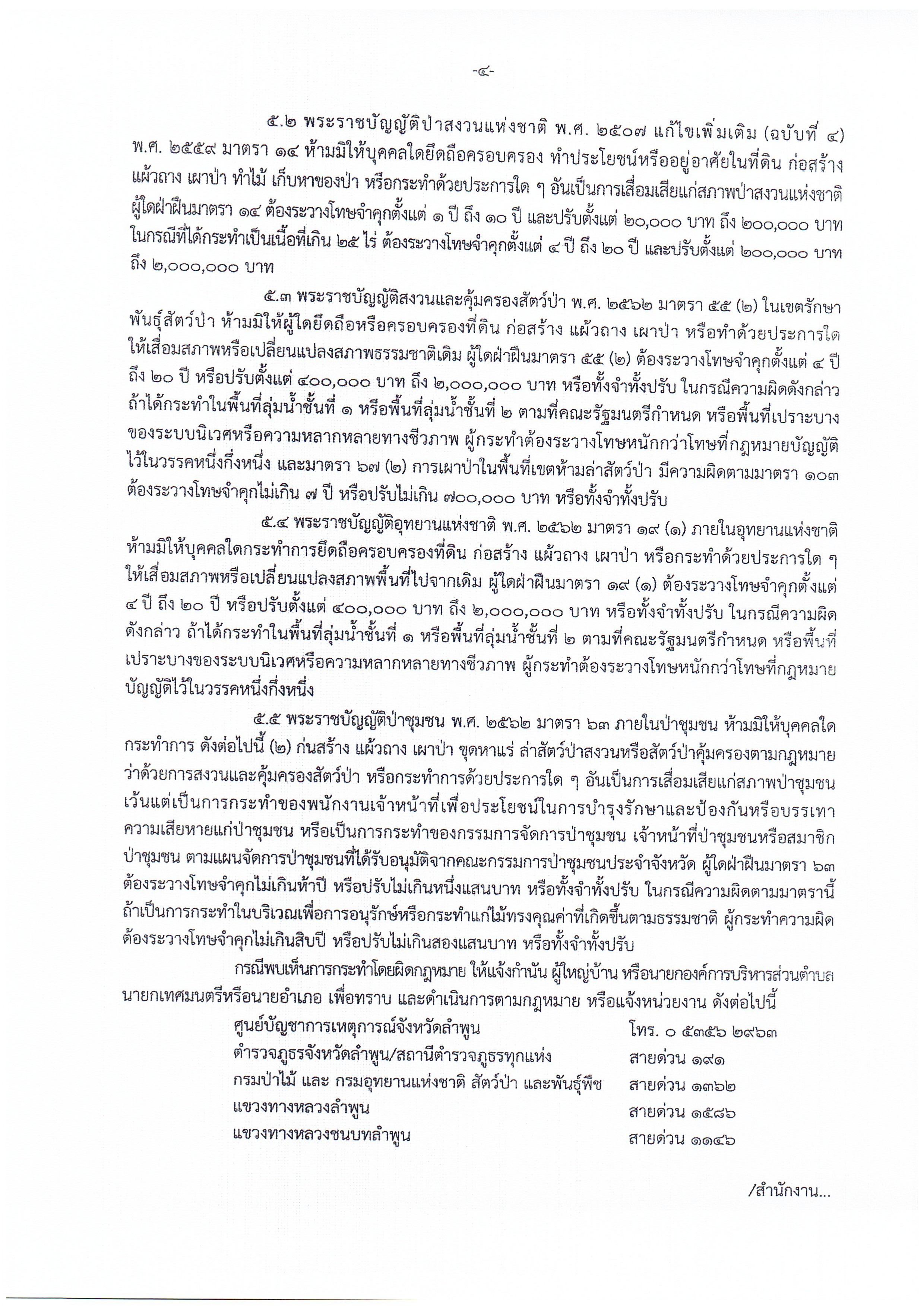 หากพบการกระทำผิด ให้แจ้งต่อ กำนัน ผู้ใหญ่บ้าน นายกองค์การบริหารส่วนตำบล นายกเทศมนตรี นายอำเภอ หรือหน่วยงานที่เกี่ยวข้อง เพื่อดำเนินการตามกฎหมาย