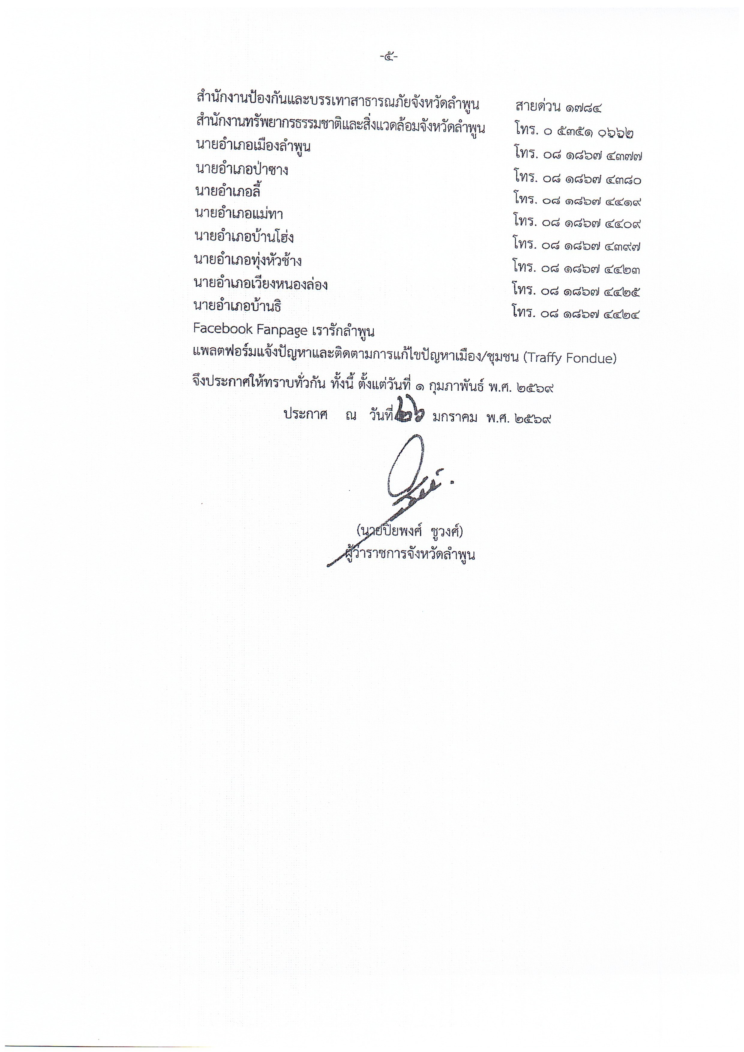 ประกาศจังหวัดลำพูน